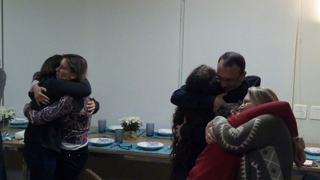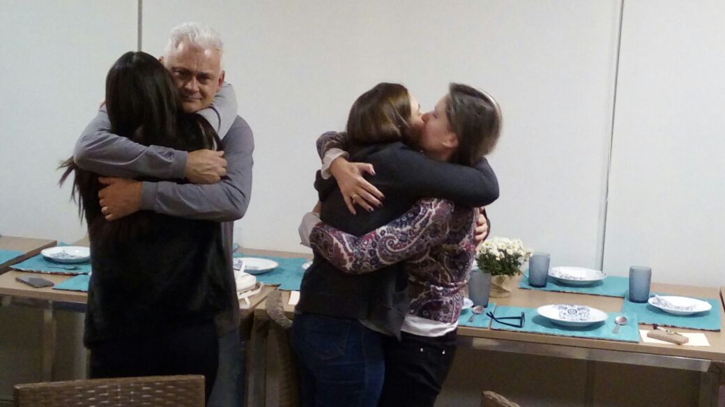 Depois de um grande exercício pessoal de amor, sinceridade e caridade para com o outro no grupo (com ausência de julgamento) partimos para o especial encontro com a família, hora de reconectar o que invisivelmente (nas entre linhas do dia-a-dia) minam uma boa relação familiar. Parar, ouvir o outro, sentir o outro, conhecer as dores e angustias do outro promoveram o bem-estar e o entendimento, o olhar sincero nos olhos, o toque acolhedor, as lágrimas derramadas foram a mais bela manifestação de amor de um coração que se liberta da angustia e se reconcilia com a paz. Por fim a cura que se dá com um abraço de reconhecimento e acolhimento de todo sentimento guardado que necessitava de compreensão, do perdão escondido atrás do orgulho, da alegria camuflada pela razão e por todas as pressões pessoais e as do mundo.
